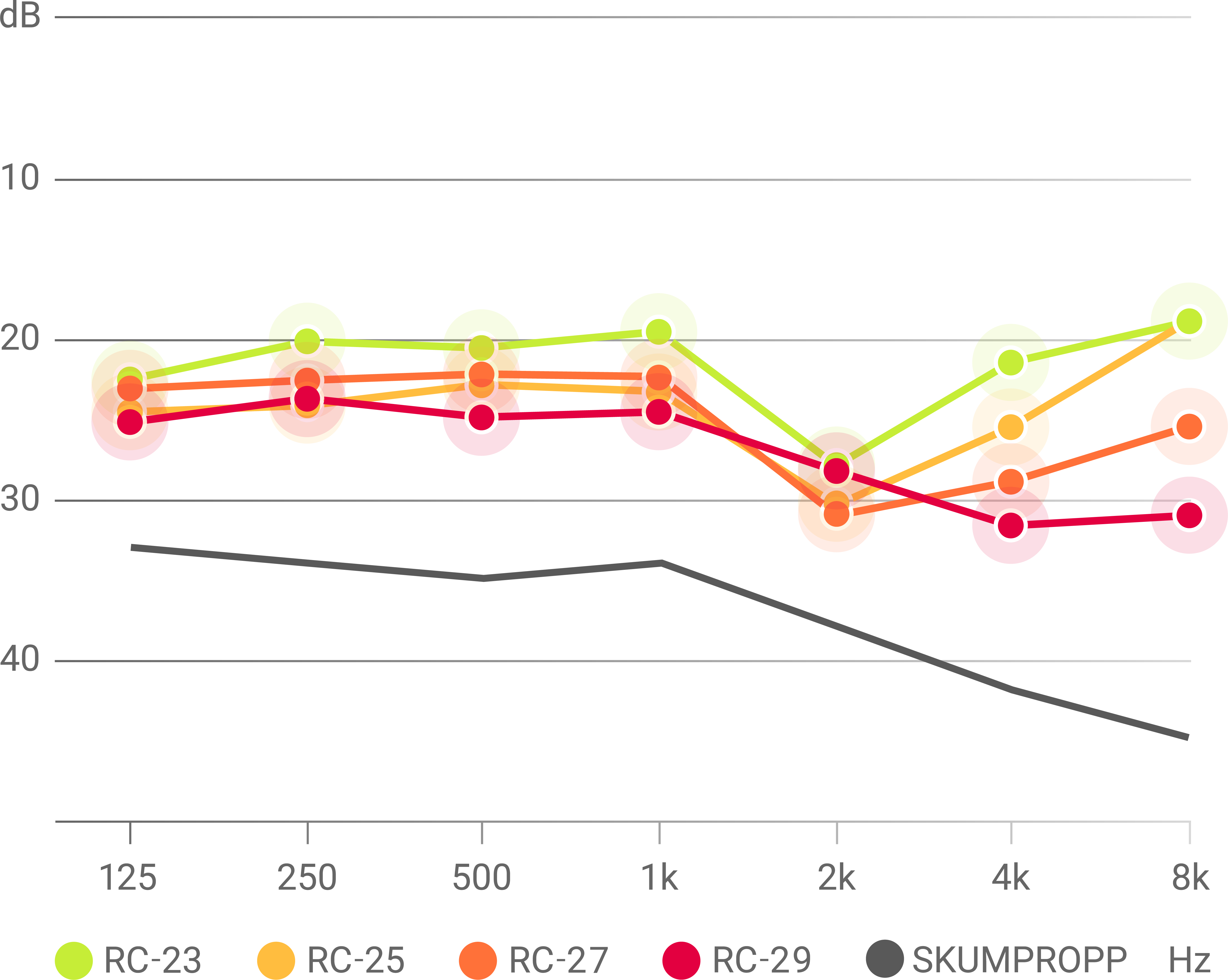 Medeldämpning, APV i decibel för Bellman RC över olika frekvenser.