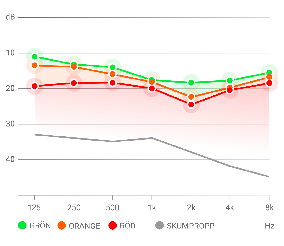 Medeldämpning, APV, i decibel för Noizezz över olika frekvenser.