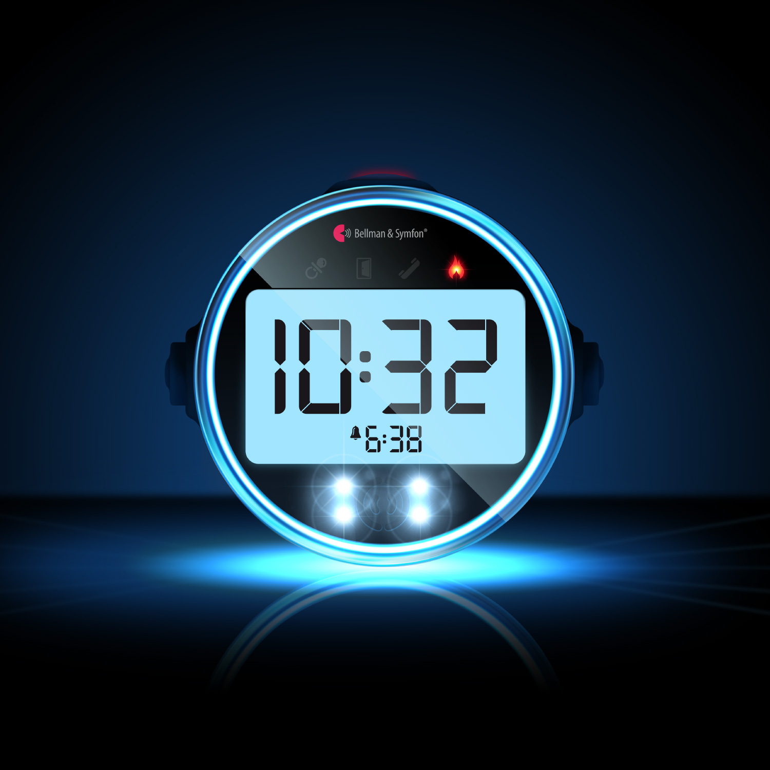 Denne alarmklokken vil vekke deg med høy lyd, blinkende lys og vibrasjoner fra sengevarsleren når du må stå opp. Den vil også vekke deg når noen ringer på døren eller ringer i telefonen, når ditt barn gråter eller når røykvarsleren blir utløst.