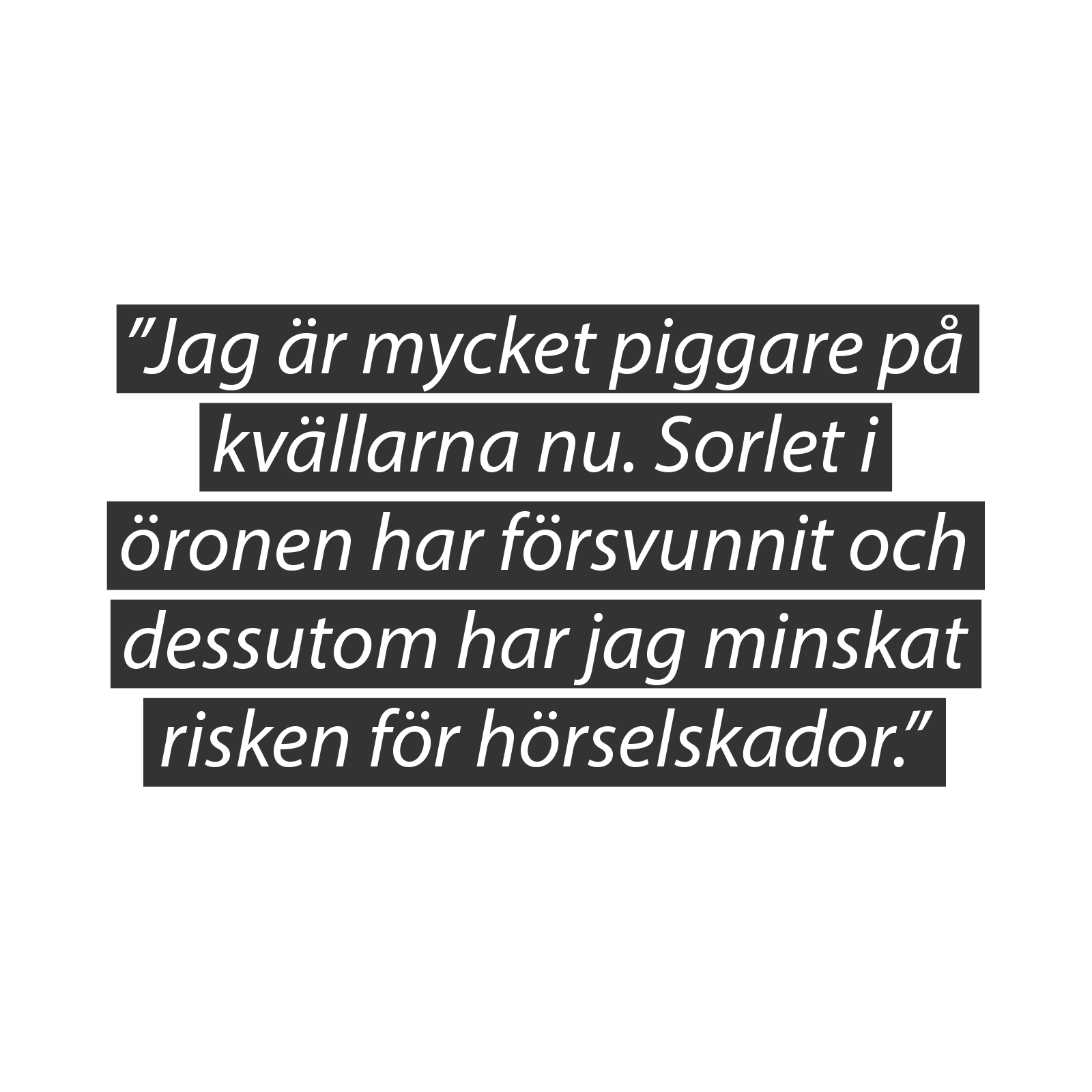 Jenny upptäckte hörselskyddet under hösten 2012 och märkte redan under första veckan att de gav resultat. Sedan dess har det varit självklart för henne att använda dem.