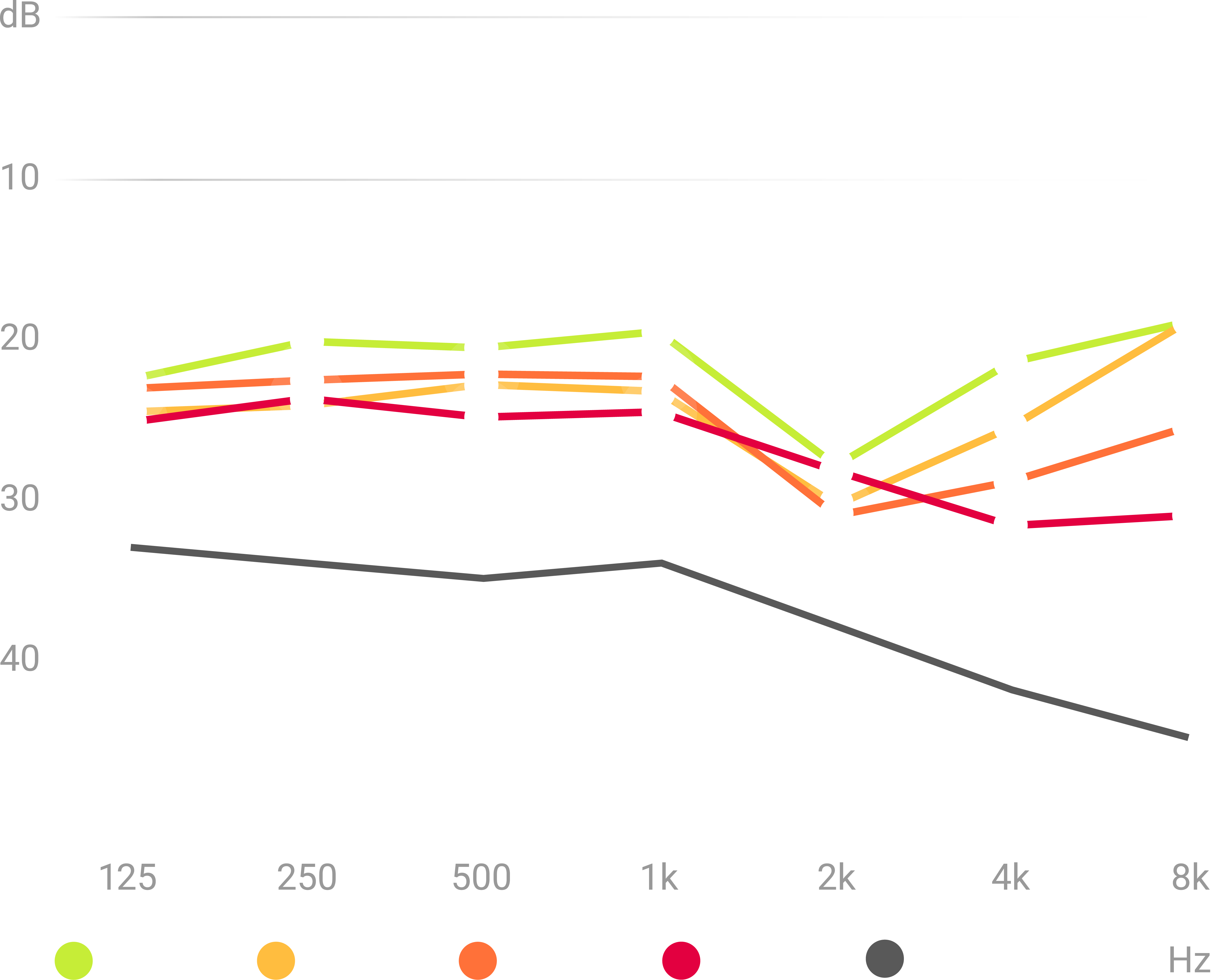 Medeldämpning i decibel för Bellman RC över olika frekvenser.