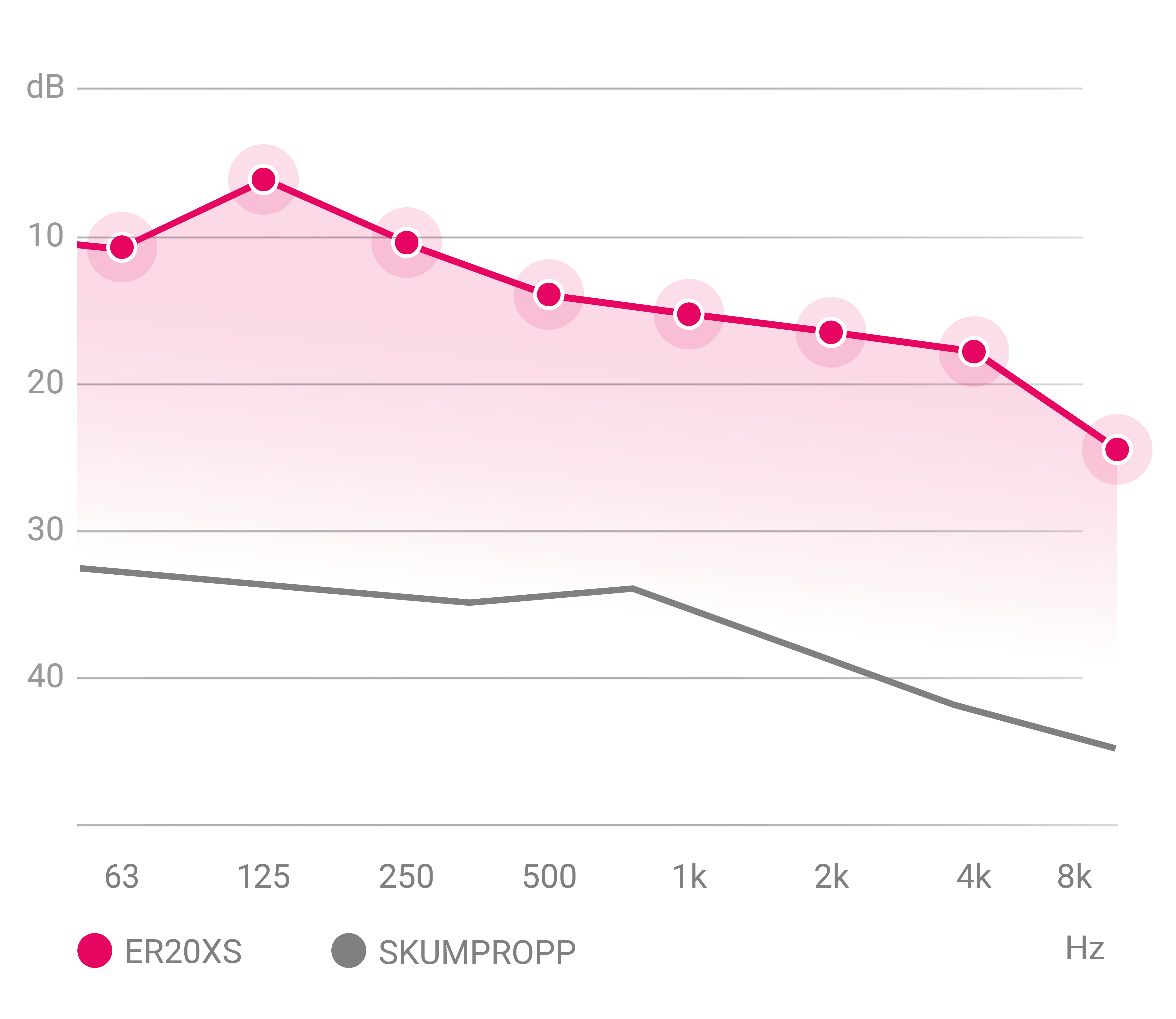 ER20XS är nästa generation av det populära Hi-fi hörselskyddet ER20. Med sin nya slimmade design dämpar det ca 20dB över alla frekvenser utan att göra avkall på komfort eller ljudkvalitet. ER20XS rekommenderas för: