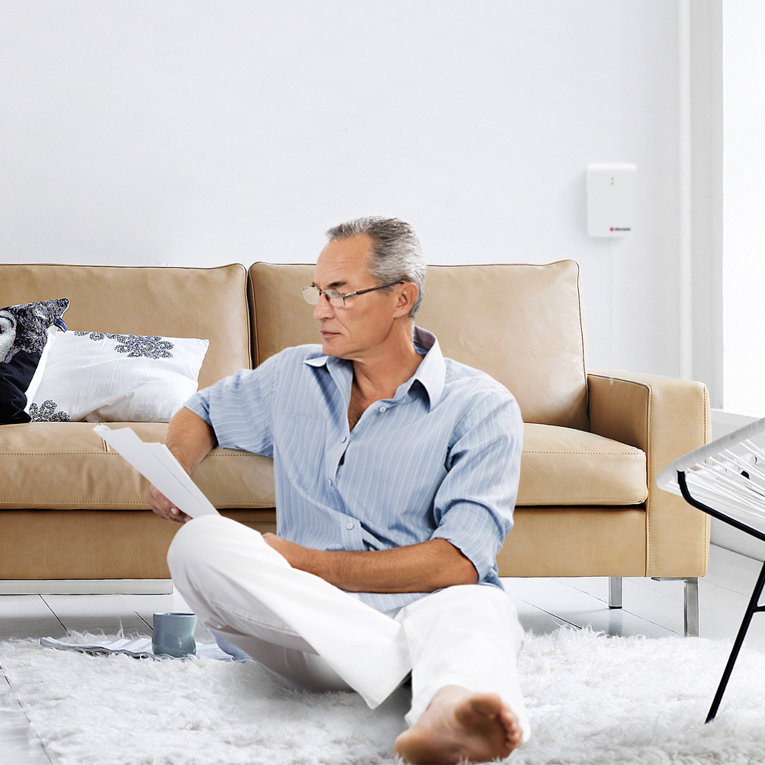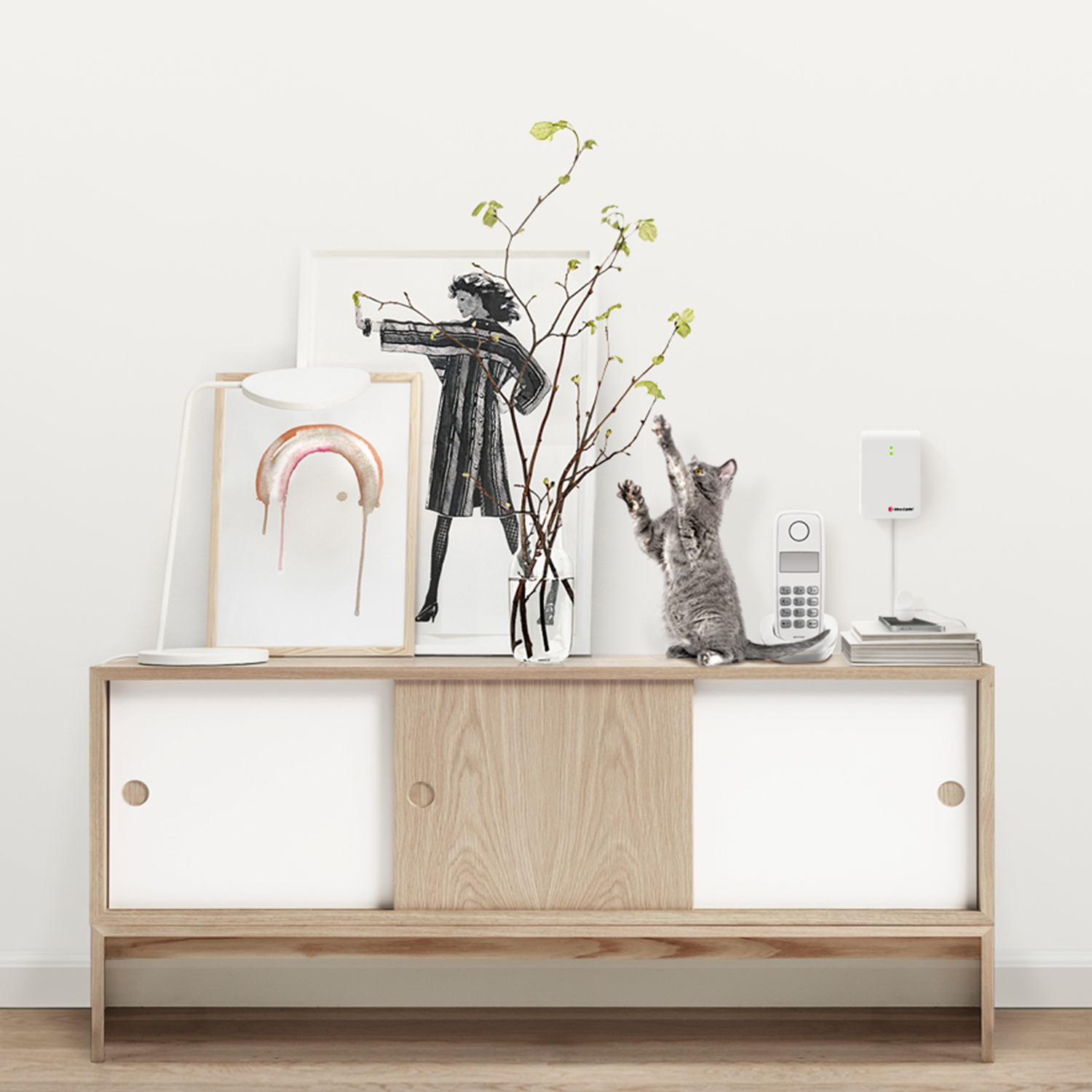 Telefonsändaren är en del av Visitsystemet som hjälper dig att hålla koll på ditt hem. Den meddelar dig när du tar emot samtal och har två extra triggeringångar för att kunna anslutas till flera andra funktioner. Du kan välja att ha olika signalmönster för varje tillbehör så att det blir lätt att skilja dem åt.