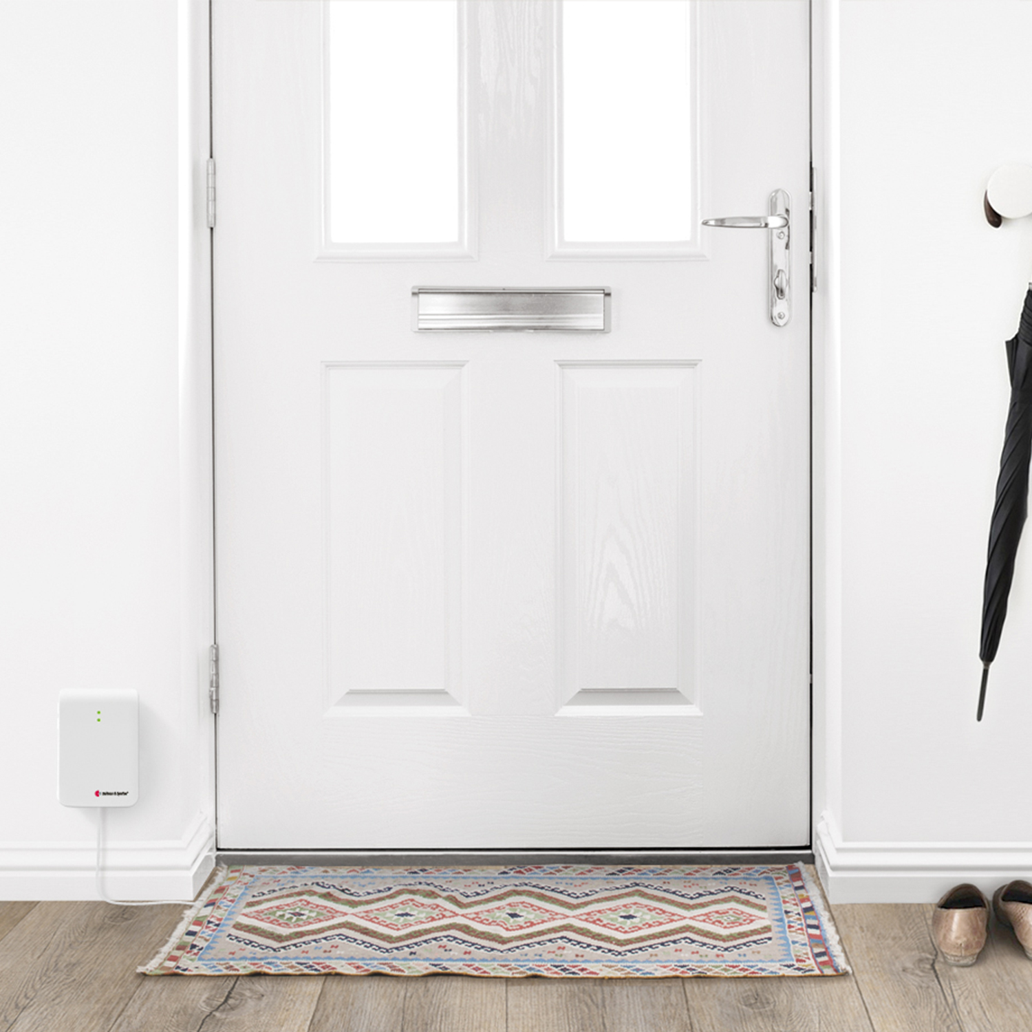 Den här trampmattan används tillsammans med Visit telefonsändare för att meddela dig när någon kliver upp ur sängen eller går in i/ut ur ett rum. När personen trampar på mattan skickas en signal till din Visitmottagare.